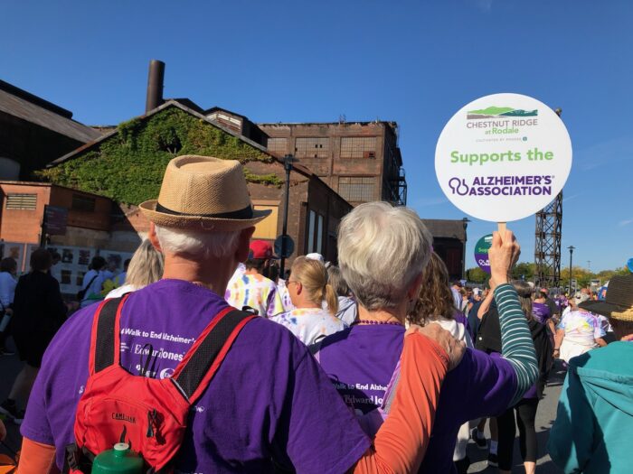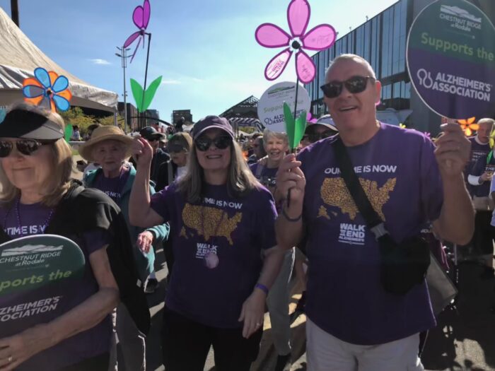 This selfless act of charity and community culminated in the day of the local Lehigh Valley chapter’s “Walk to End Alzheimer’s” on Saturday, September 20. A group of 37 “walkers” on the Chestnut Ridge team (made up of residents, staff, and family members) participated in the festivities at the ArtsQuest Center in Bethlehem, PA.
