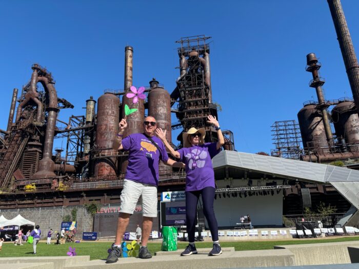 Beautiful, sunny weather framed the day, as residents donned Alzheimer’s Association shirts and carried Team Chestnut Ridge signs. The team posed for a celebratory group photo in front of the impressive Steel Stacks before the walk began.