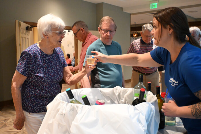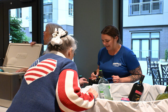The dining area featured Fourth of July decorations to bring the theme together. Kristin Pekarik, Lifestyle Specialist, served sun-kissed alcoholic beverages and soft drinks to anyone who wanted one from icy coolers.